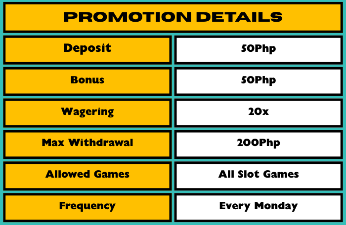 1. Get an EXTRA Php 50 added to your deposit included in this promotion.